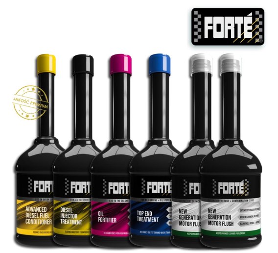 Procedura - wlać odpowiednią ilość Forté New Generation Motor Flush do brudnego oleju, przed wymianą (nie przekraczać górnego poziomu oleju na bagnecie) płukać silnik na wolnych obrotach przez ok 1 godzinę (co 5 min. należy na chwilę podwyższyć obroty do 2,5 tys./min.