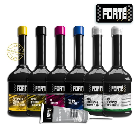 Procedura - płukanie podczas jazdy, po kontroli oleju i stwierdzeniu, że olej nie jest nadmiernie zagęszczony lub bardzo brudny - wlać odpowiednią ilość Forté New Generation Motor Flush do brudnego oleju przed wymianą (nie przekraczać górnego poziomu oleju na bagnecie), wykonać ok 50 km przy niskich obrotach silnika i małych prędkościach max 100 km /godz.