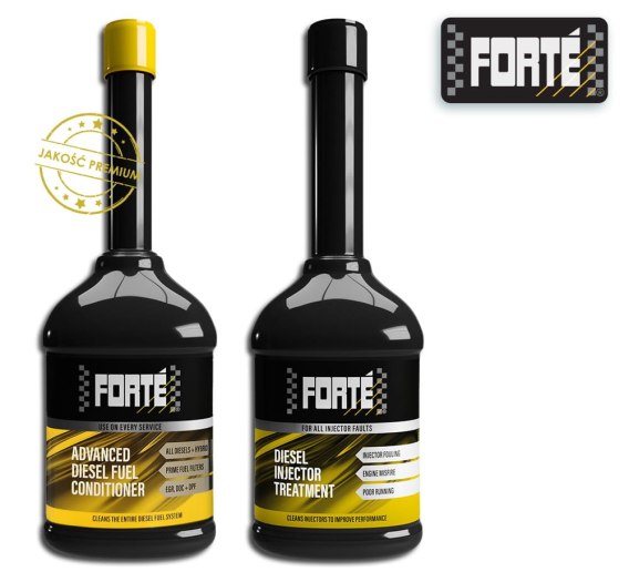 Pakiet Forté służy do czyszczenia całego układu zasilania silnika (bak, przewody, regulator ciśnienia, pompy paliwa, wtryskiwacze). Oczyszcza również rowki i pierścienie uszczelniające cylindry.