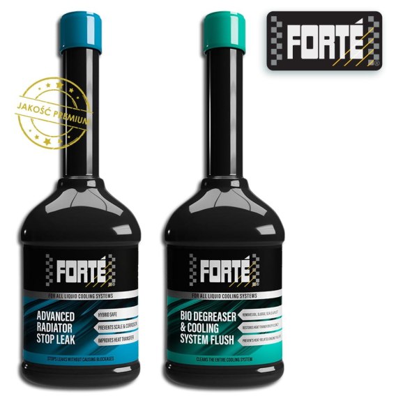 Dodać 400 ml Forté Advanced Radiator Stop Leak do nowego płynu, lub zastosować 10% objętości przy systemach chłodzenia o większej pojemności.