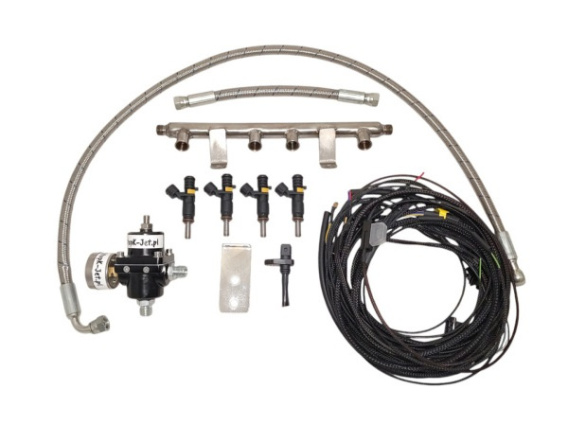 Dieses Produkt enthält alles, was Sie für eine erfolgreiche elektronische Einspritzinstallation benötigen: Einspritzdüsensteckdosen, Kraftstoff- und Vakuumleitungen sowie einen Kabelbaum mit den entsprechenden Steckern und Stiften zum Anschluss des neuen Motorsteuergeräts. Sie müssen sich keine Sorgen über fehlende Elemente machen – alles ist bereits da!